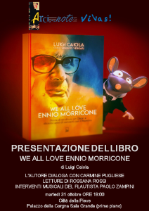 Martedì 30 ottobre, presso la Sala Grande di Palazzo della Corgna (primo piano) di Città della Pieve, in Piazza Antonio Gramsci, Luigi Caiola presenta il suo “We all love Ennio Morricone. Storia di un disco, un Oscar e diciotto anni di concerti con il maestro”. Orario d’inizio evento alle 18:00.
